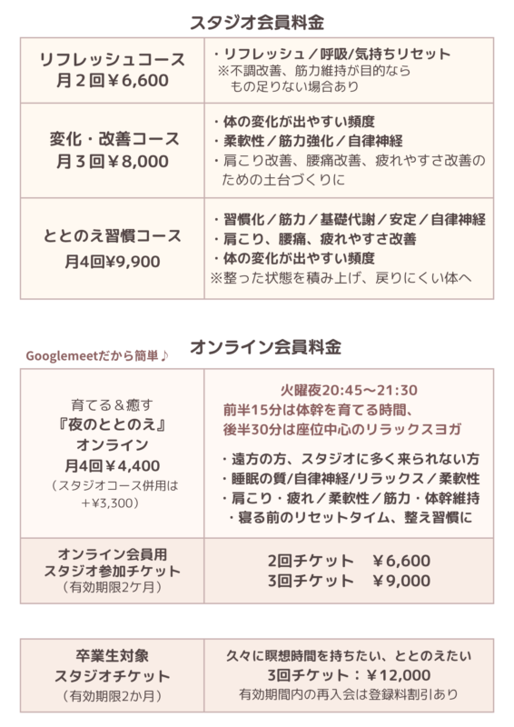 ◆体験レッスン 1回 ¥3,300/2回チケット(3週間以内)¥5,500