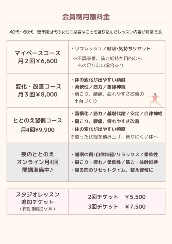 ◆体験レッスン 1回 ¥3,300/2回チケット(3週間以内)¥5,500